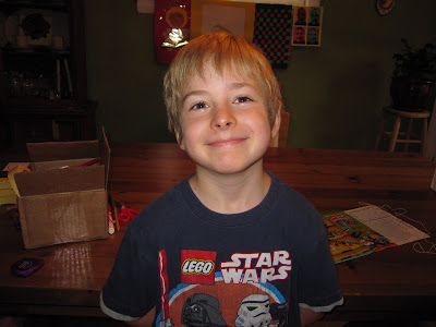 I love how he turns red yet is still wearing a Lego and Star Wars tee shirt. Very cute.